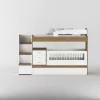 Cama cucheta con cuna funcional. Apta para 2 colchones convencionales de 190 x 80 cm, (cuando se desarma la cuna) con escalera de peldaños muy segura. Incluye un asa para tomarse al subir, es un producto apto para bebés, niños o pequeños adolescentes.